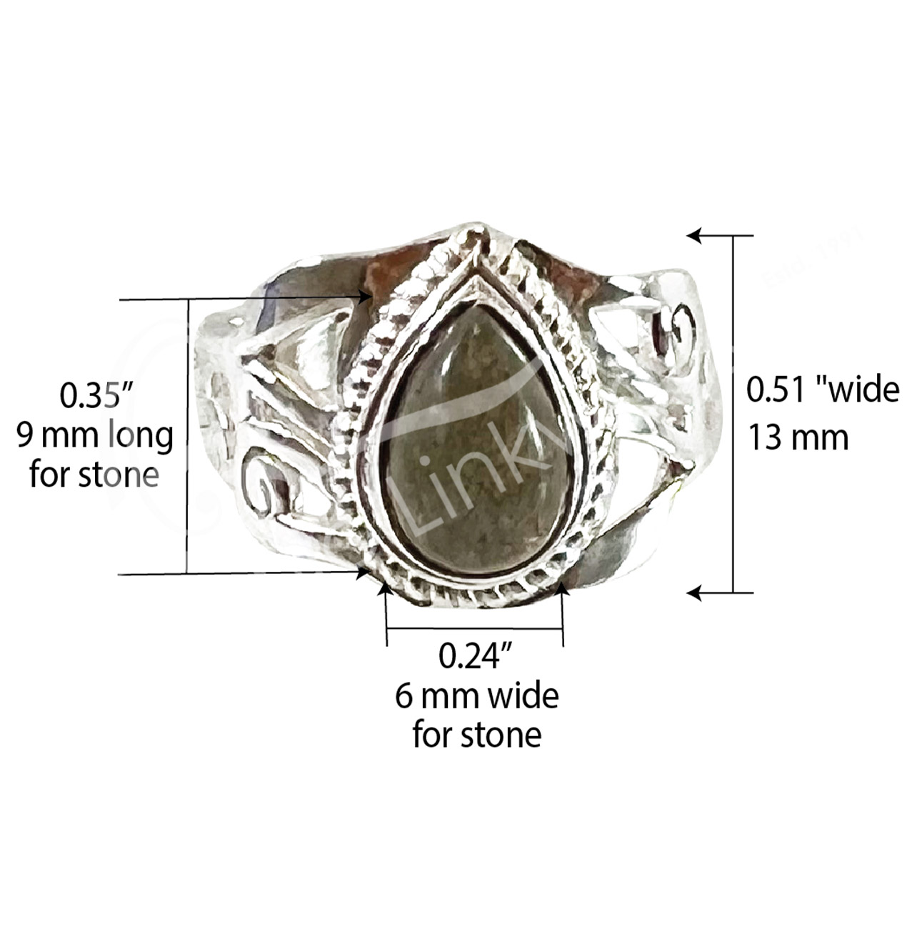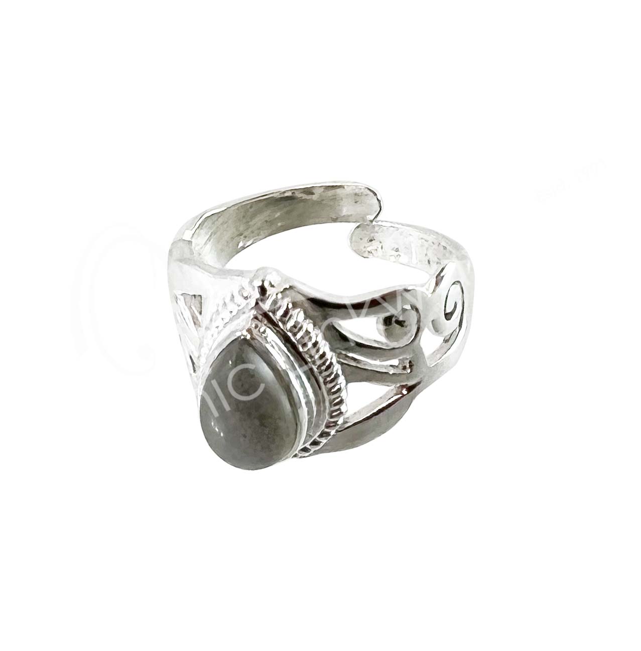 STERLING SILVER – RING, ADJUSTABLE PAN JALI TEARDROP LABRADORITE