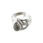 STERLING SILVER – RING, ADJUSTABLE BIG JALI OVAL LABRADORITE 0.45″W