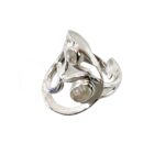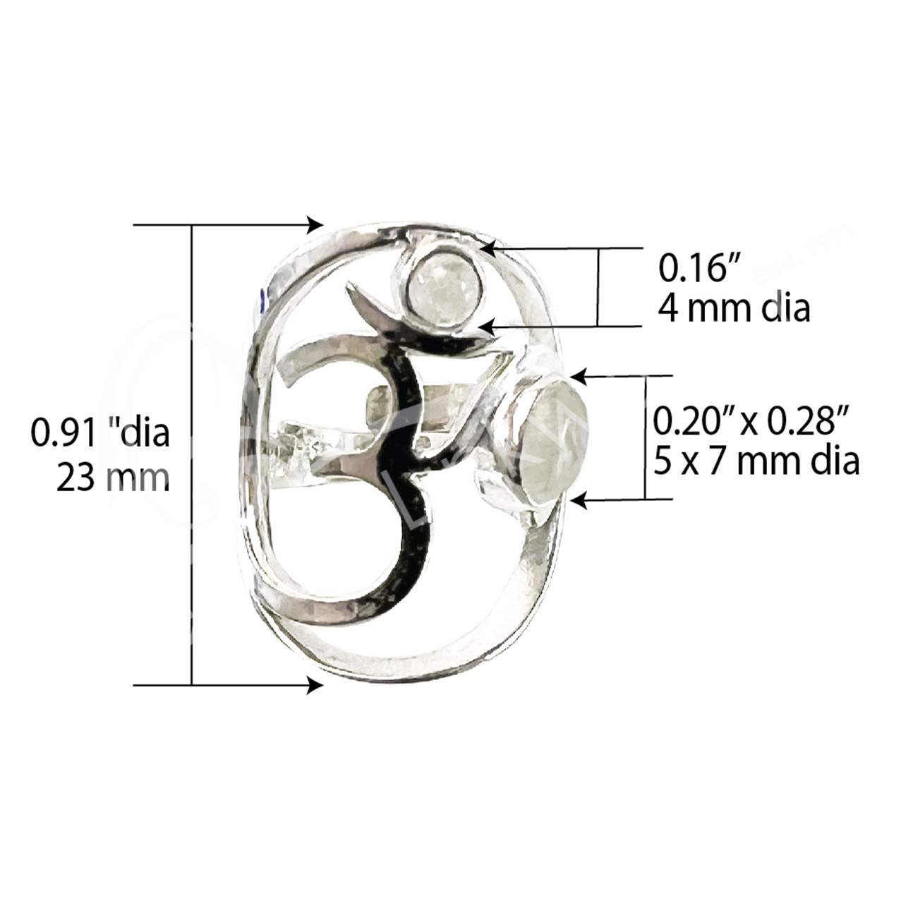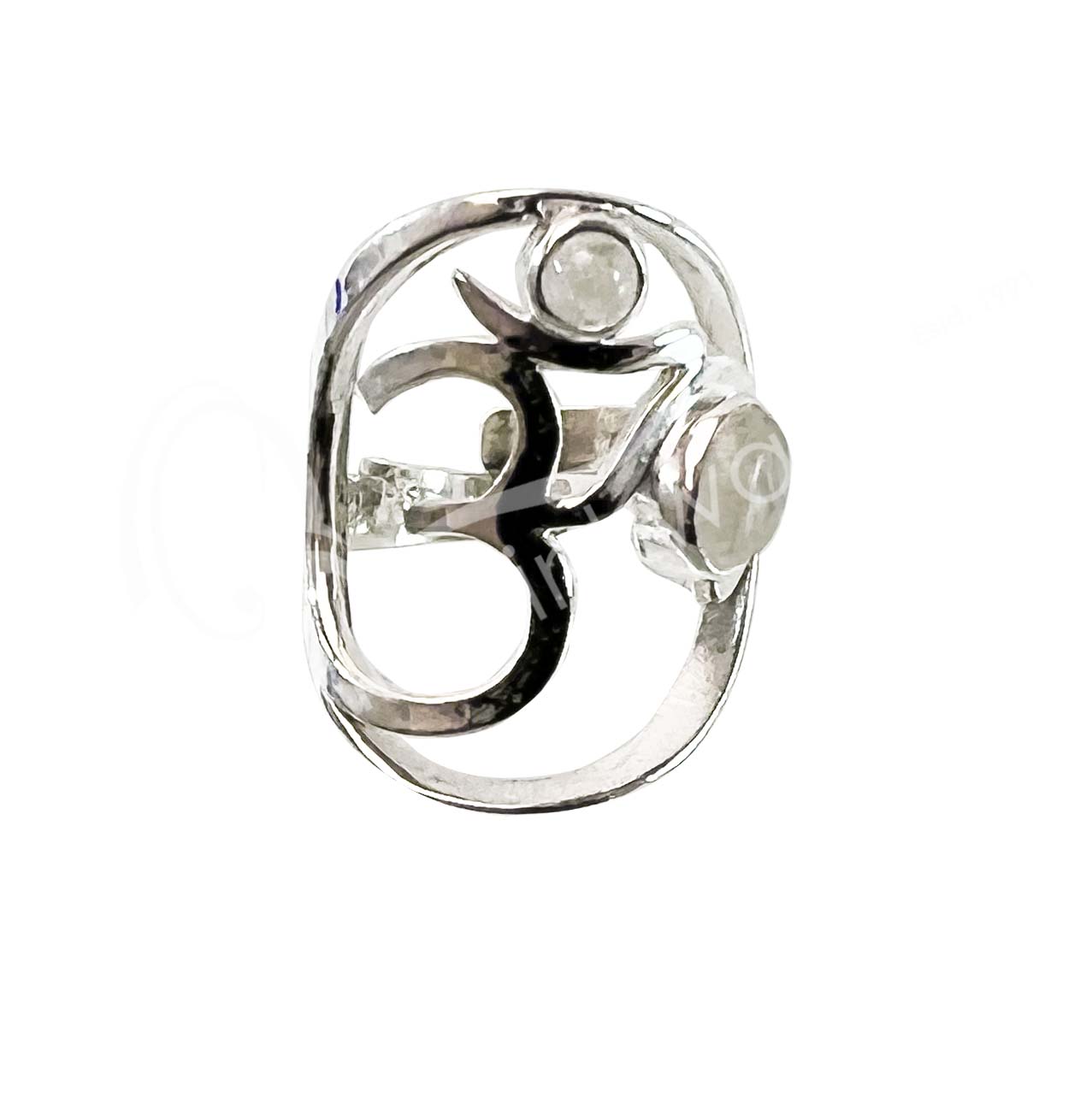 STERLING SILVER – RING, ADJUSTABLE OM RAINBOW MOONSTONE