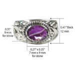 STERLING SILVER – RING, ADJUSTABLE BIG JALI OVAL AMETHYST 0.45″W