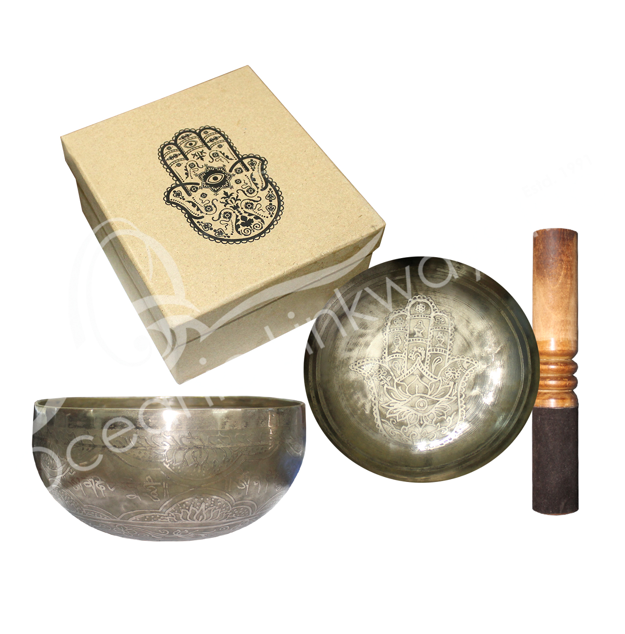 SINGING BOWL – ETCHED HAND OF FATIMA 6″DIA.