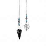 PENDULUM – HEXAGONAL OBSIDIAN, SNOWFLAKE DREAMCATCHER BEADED CHAIN 12″L