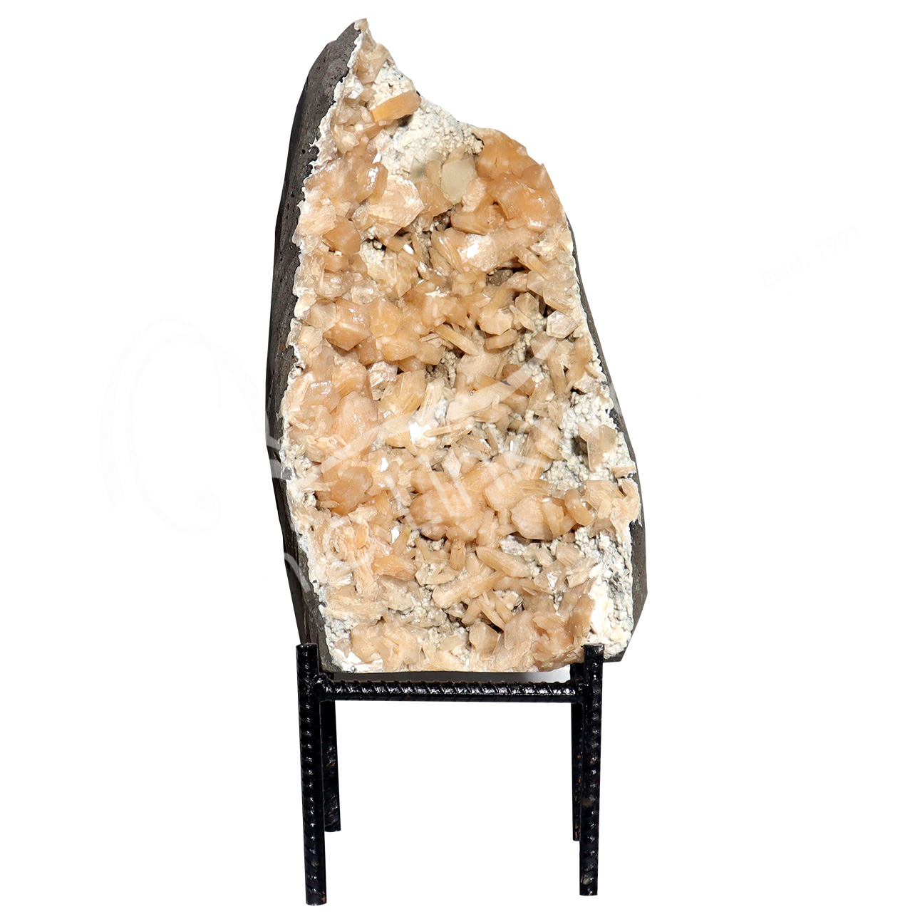 (CLOSE OUT) SPECIMEN – APOPHYLLITE & STILBITE, MIXED COLORS ON METAL STAND 16 X 8″