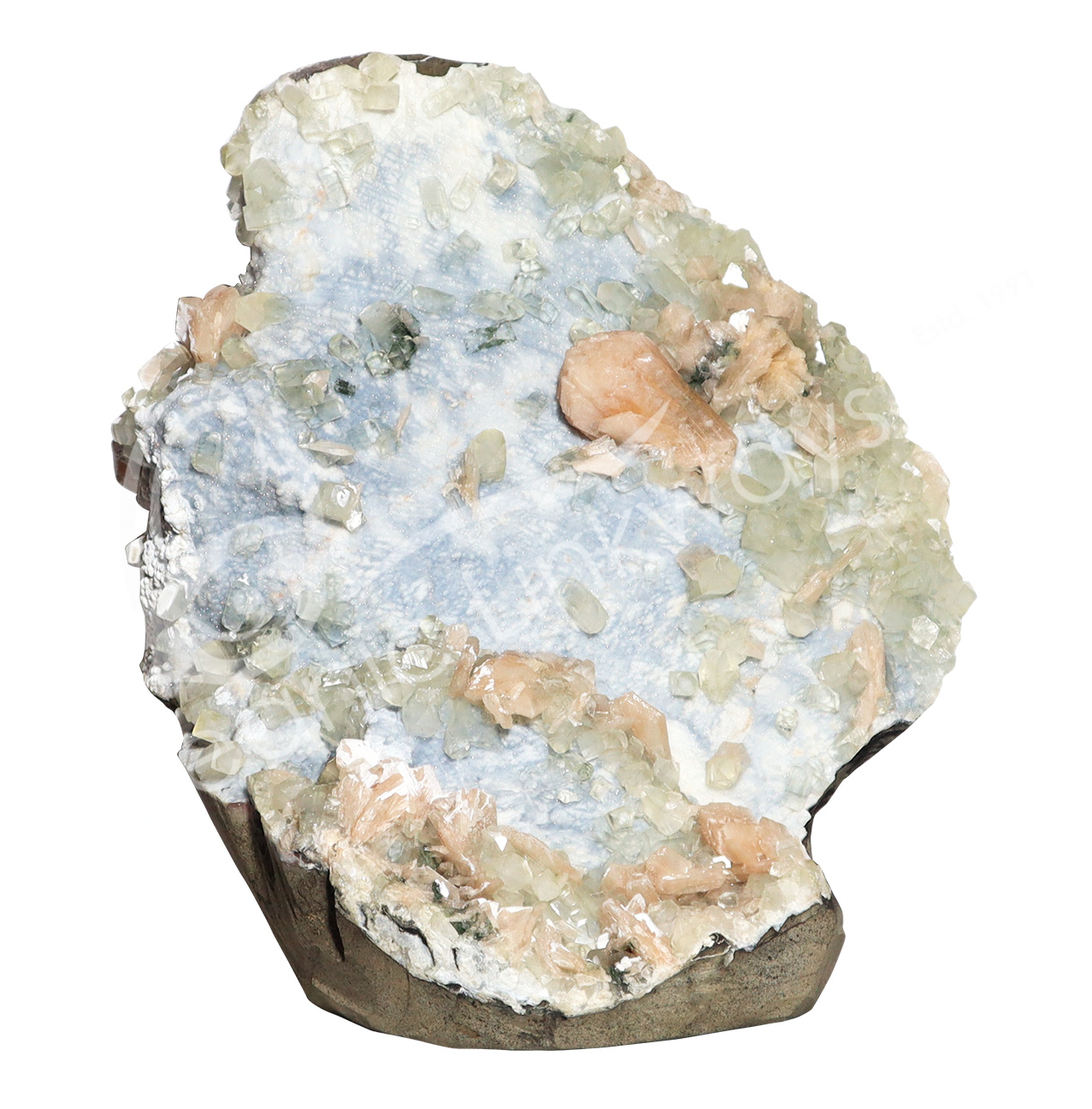 Deprecated: Function Yoast\WP\SEO\Helpers\Request_Helper::is_rest_request is deprecated since version Yoast SEO 23.6! Use wp_is_serving_rest_request instead. in /var/www/html/wp-includes/functions.php on line 6121 (CLOSE OUT) SPECIMEN - APOPHYLLITE & STILBITE, MIXED COLORS ON METAL STAND 17 X 15" | Oceanic Linkways Inc - Wholesaler of Gemstones, Minerals, Jewelry and More!