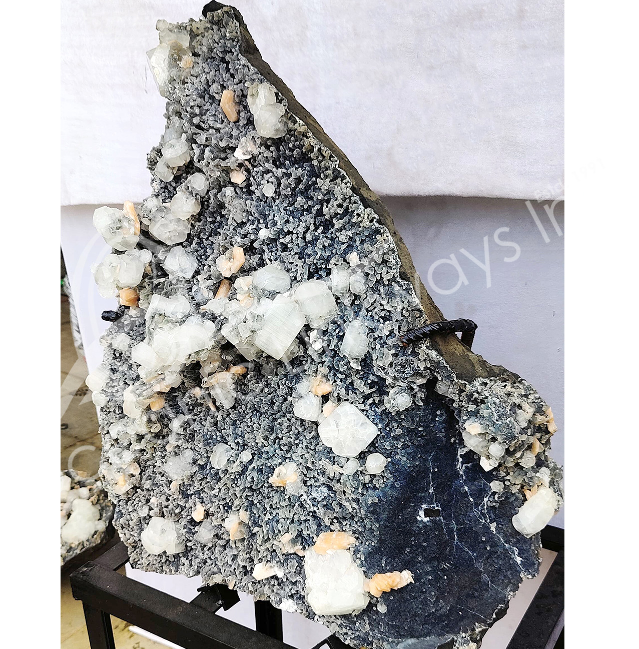 Deprecated: Function Yoast\WP\SEO\Helpers\Request_Helper::is_rest_request is deprecated since version Yoast SEO 23.6! Use wp_is_serving_rest_request instead. in /var/www/html/wp-includes/functions.php on line 6121 SPECIMEN - APOPHYLLITE & STILBITE ON BLACK CHALCEDONY WITH STAND ON WHEELS 55 X 18" | Oceanic Linkways Inc - Wholesaler of Gemstones, Minerals, Jewelry and More!