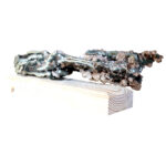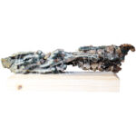 SPECIMEN – CHALCEDONY, CORAL & QUARTZ ON WOOD STAND 14 X 5 X 5″