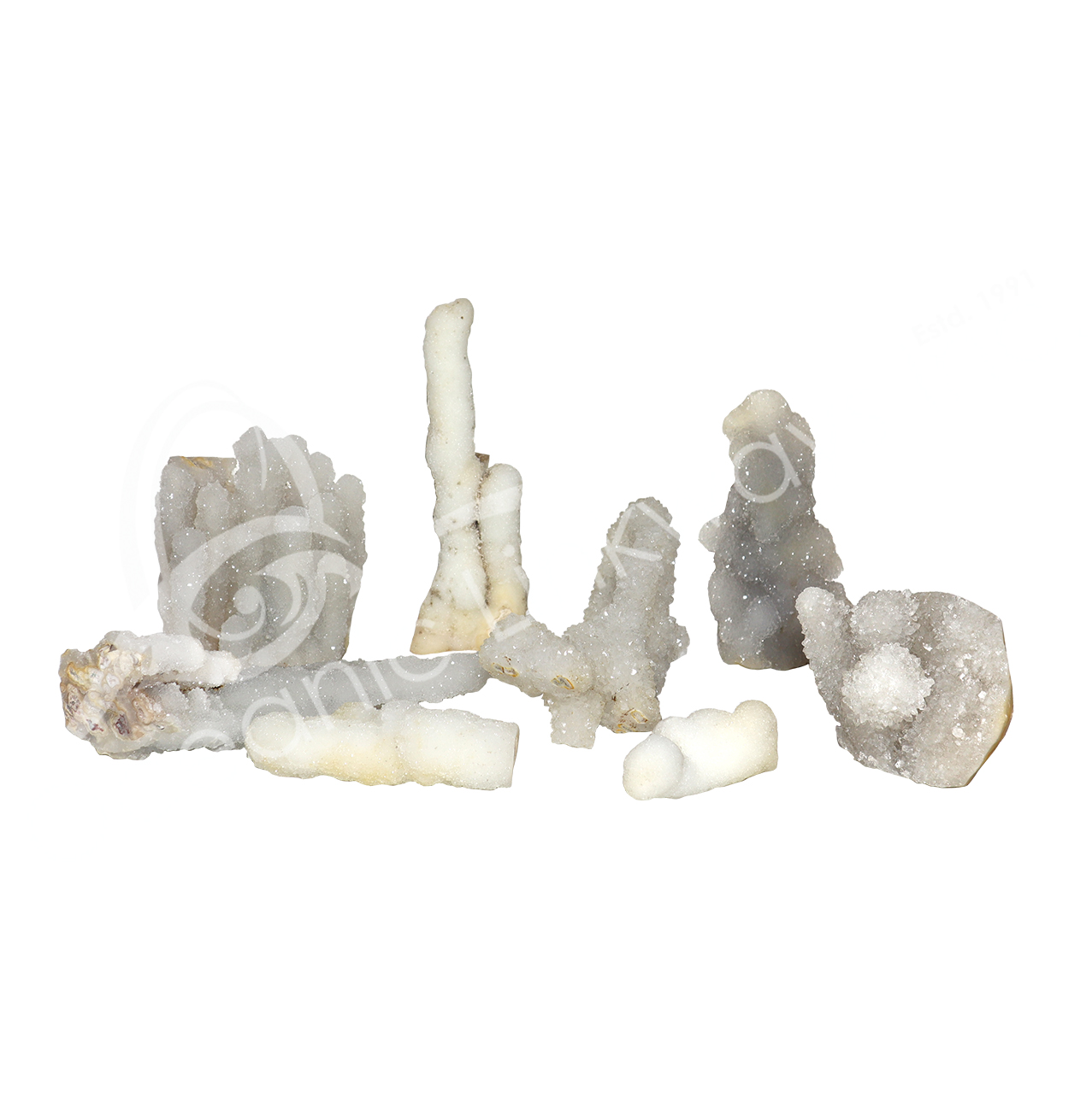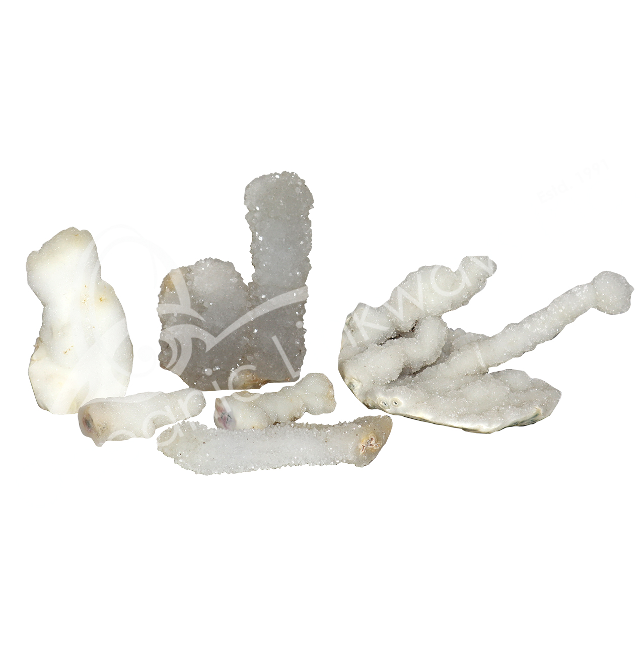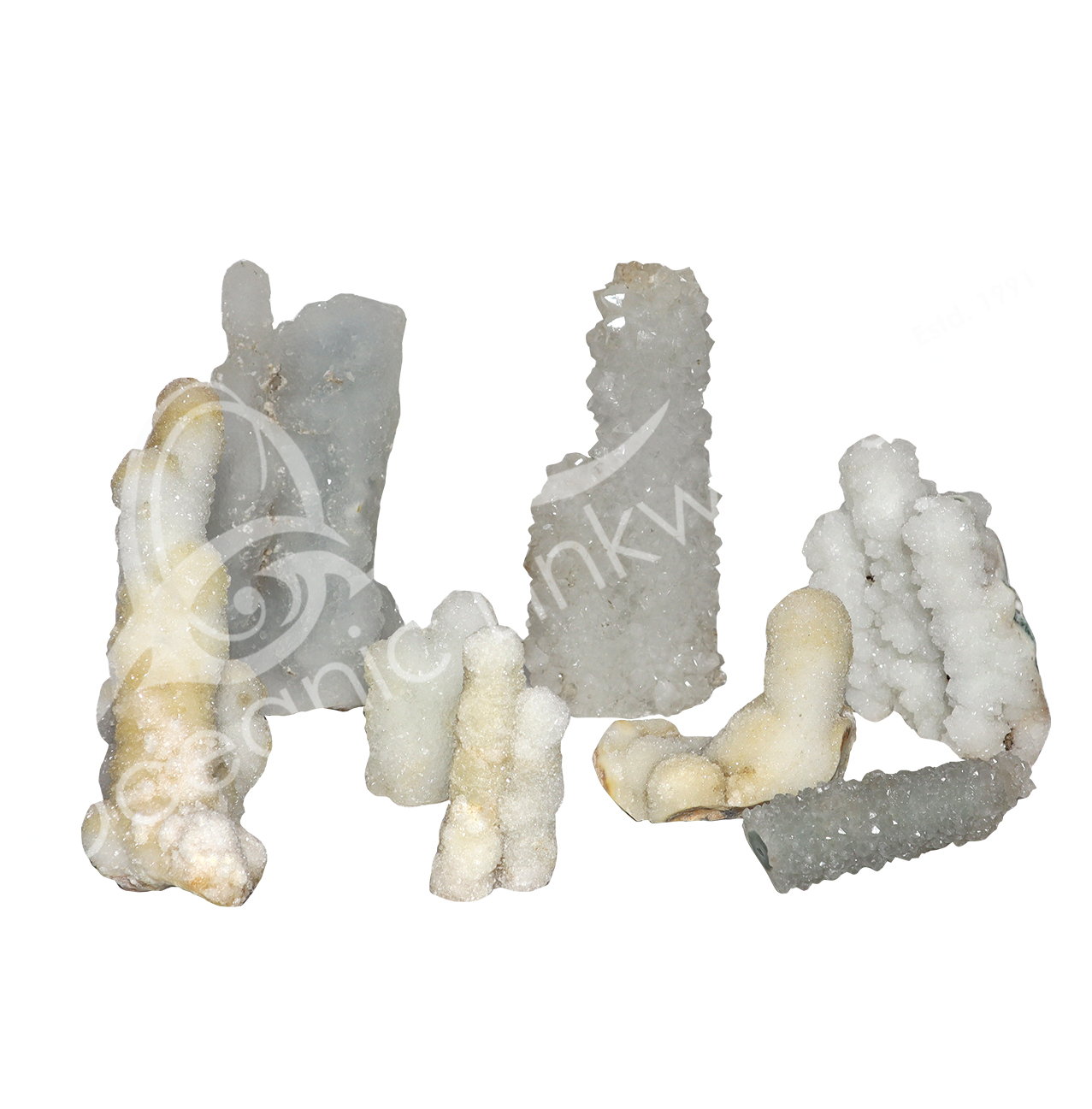 SPECIMEN – CHALCEDONY & CRYSTAL QUARTZ STALACTITE 2 X 2″ TO 9 X 12″