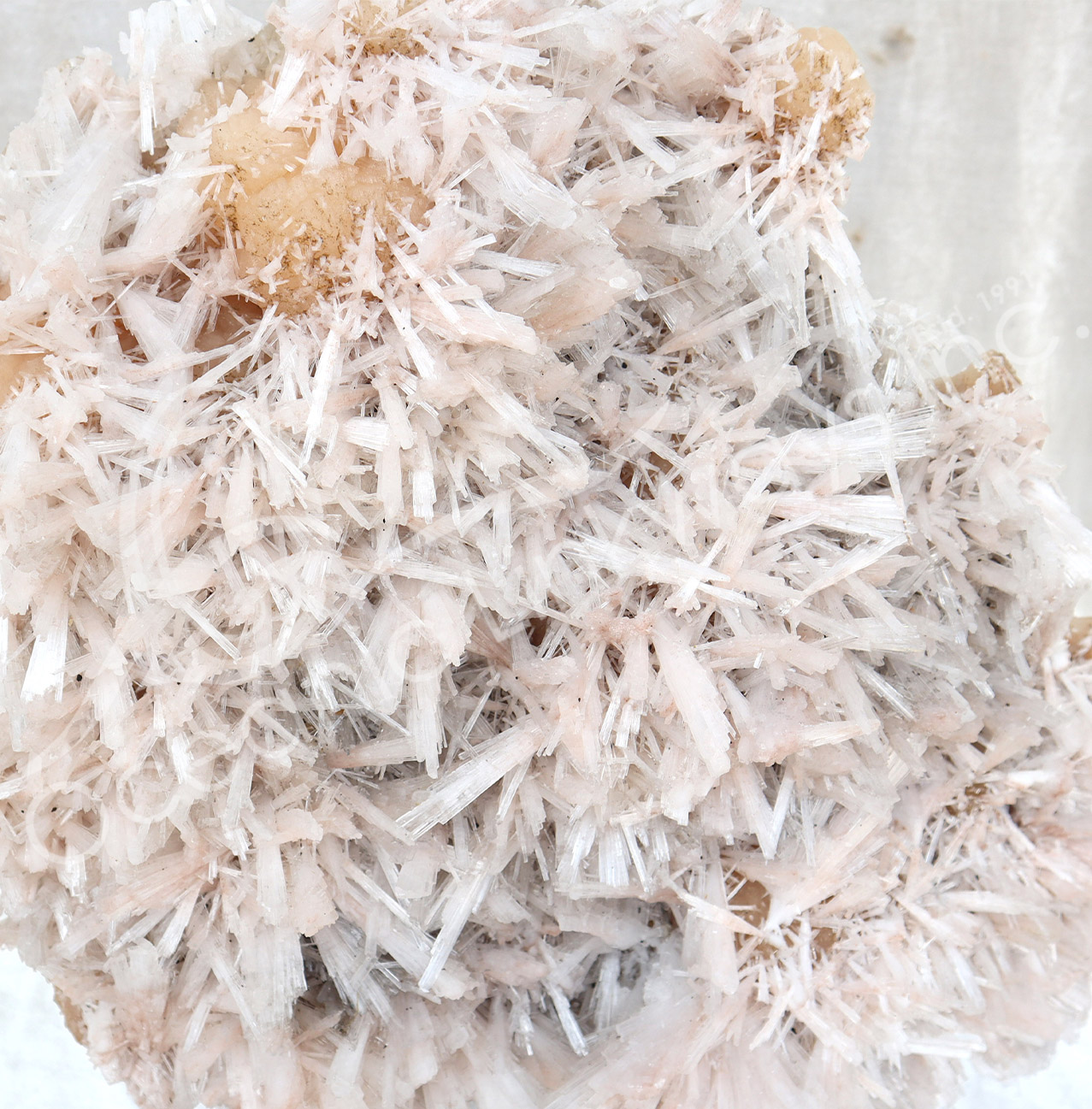 SPECIMEN – SCOLECITE CRYSTAL QUARTZ ON PINK STILBITE 16 X 13″