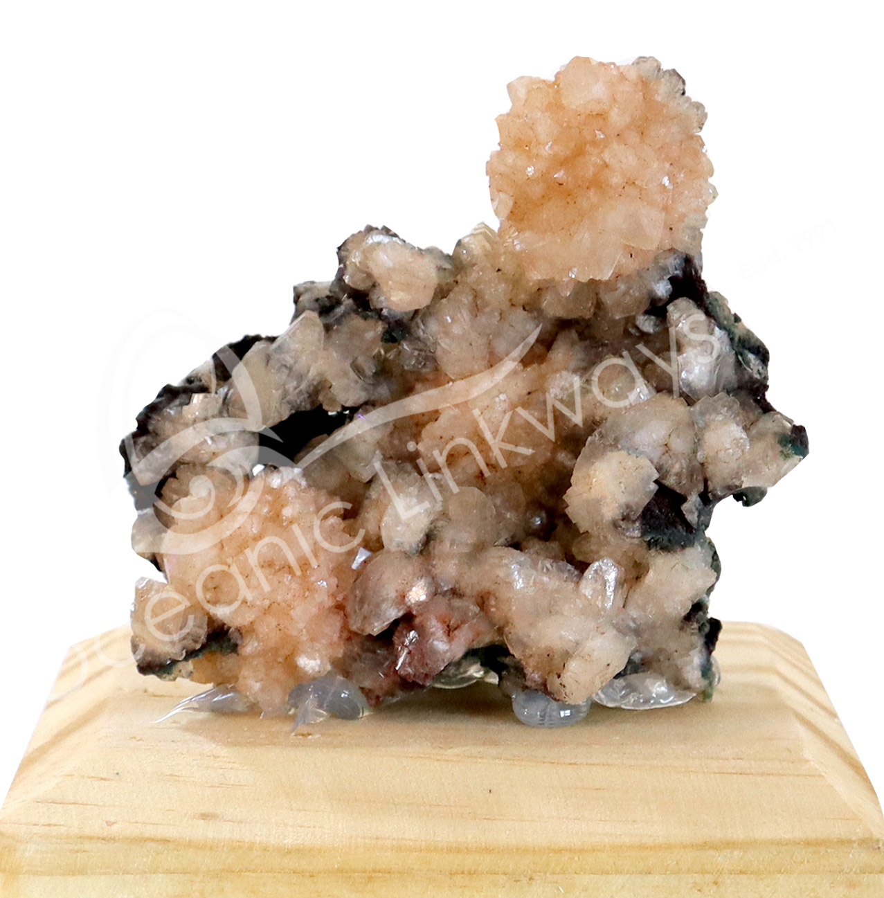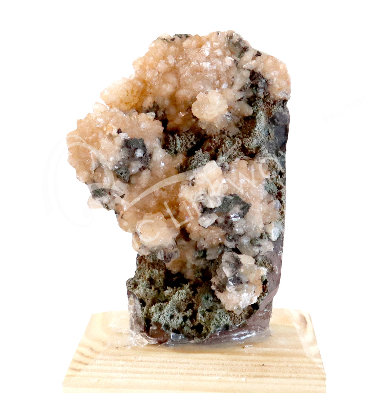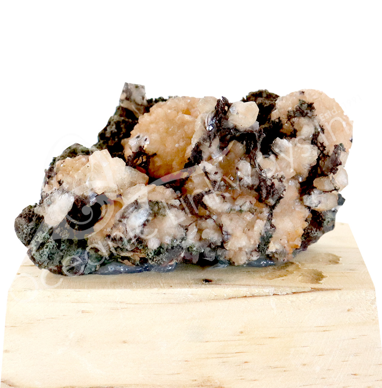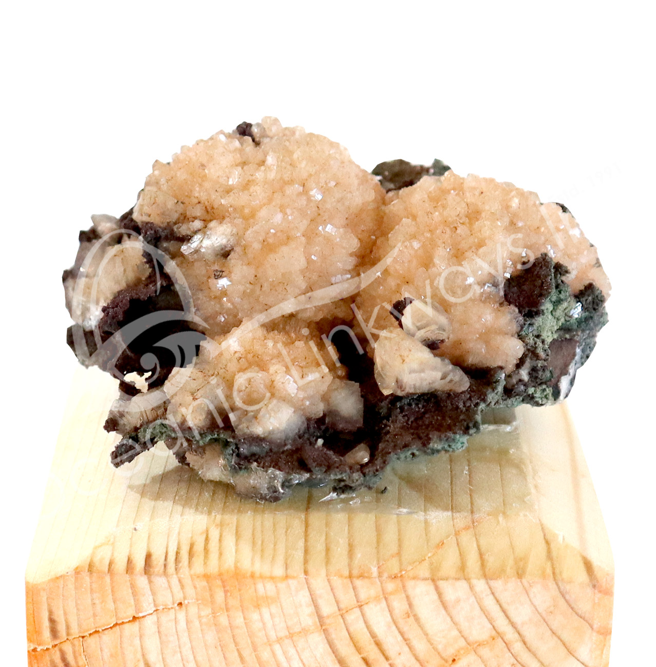 SPECIMEN – STILBITE, FLOWER ON MATRIX ON WOOD BASE 3-4″
