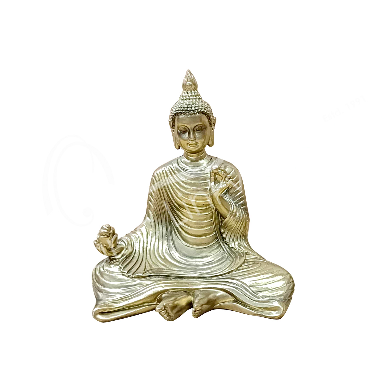 STATUE – BUDDHA, BRONZE HOLDING LOTUS 4.30″L X 4.65″H