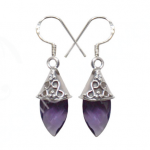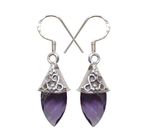 STERLING SILVER – EARRINGS FACETED DROP AMETHYST 1.5″