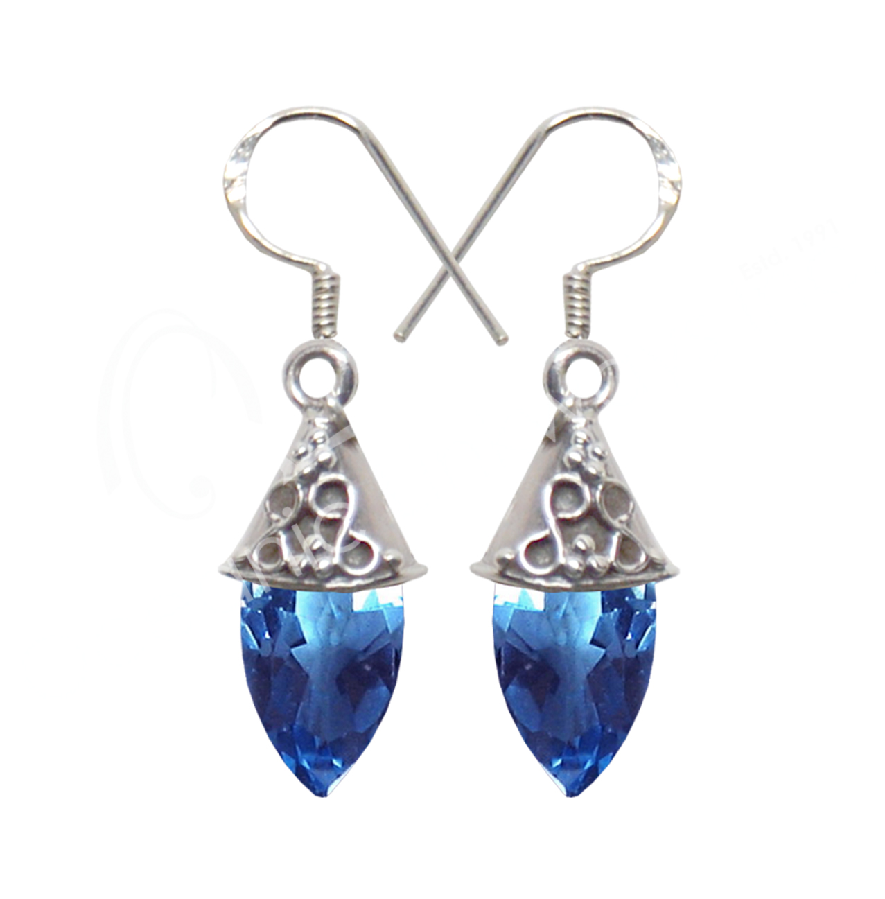 STERLING SILVER – EARRINGS FACETED DROP ALEXITE, BLUE 1.5″