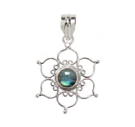 STERLING SILVER – PENDANT LOTUS LABRADORITE 1.6″