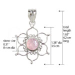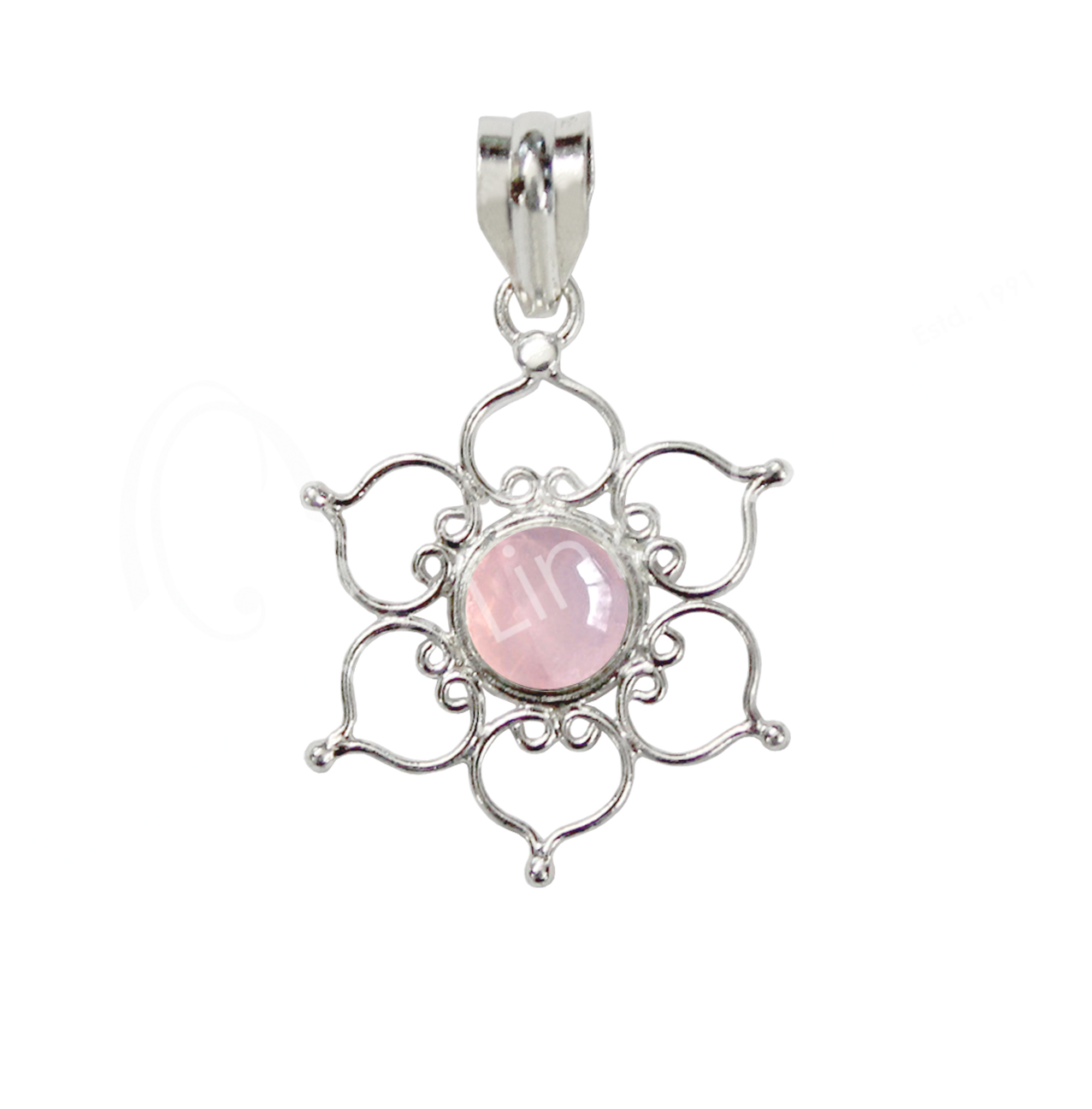STERLING SILVER – PENDANT LOTUS ROSE QUARTZ 1.6″