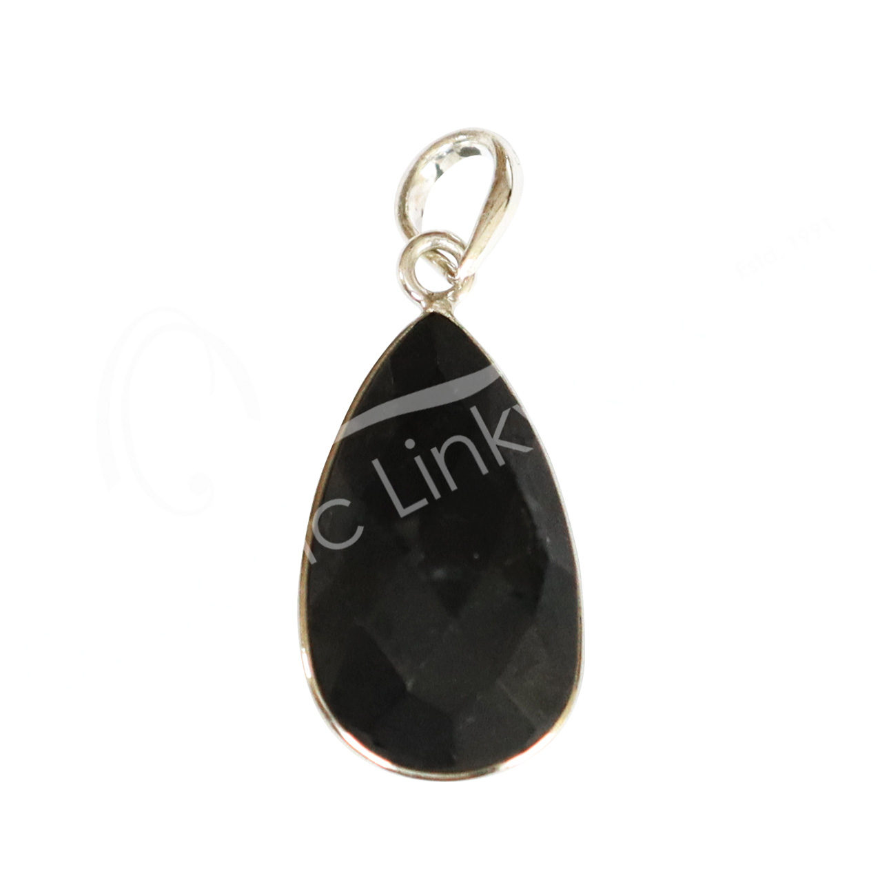 STERLING SILVER – PENDANT FACETED TEARDROP SHUNGITE 1.25″