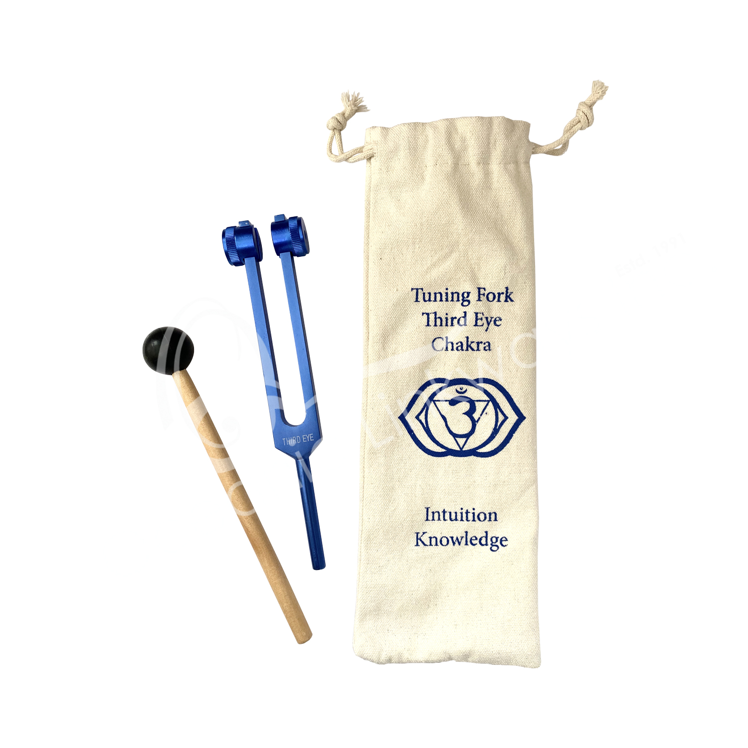 TUNING FORK – DARK BLUE/THIRD EYE CHAKRA TUNED WITH STICK & BAG 7.5″L