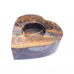 TEALIGHT HOLDER – HEART TIGER EYE 3 X 4″