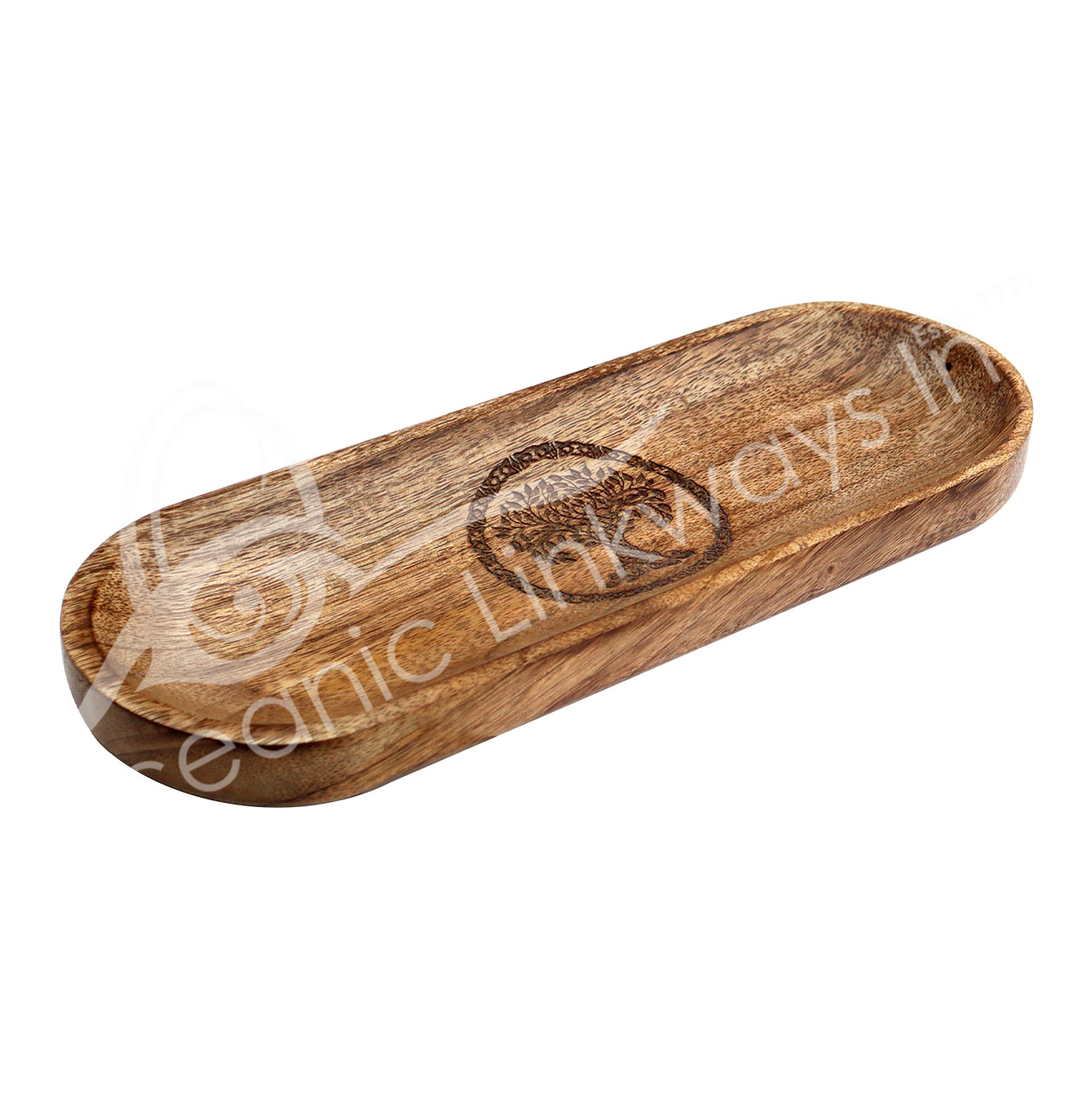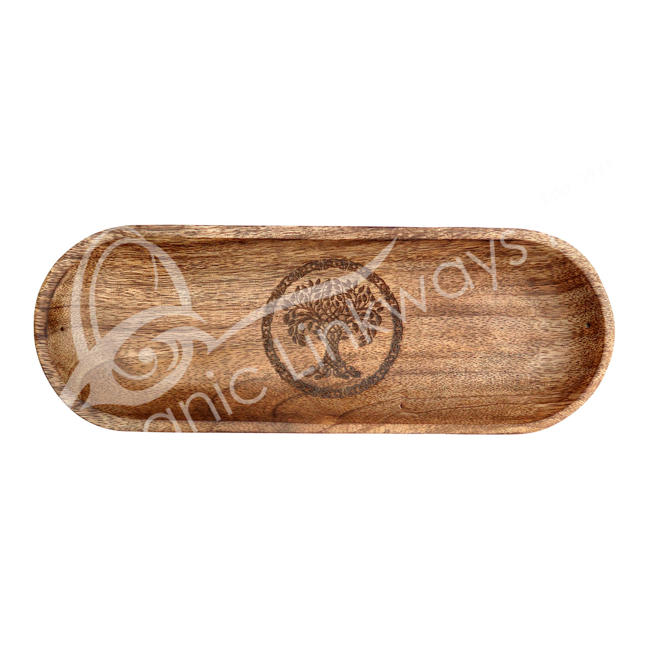 INCENSE HOLDER – MANGO WOOD LASER ENGRAVED OVAL TREE OF LIFE 11″L X 4″W