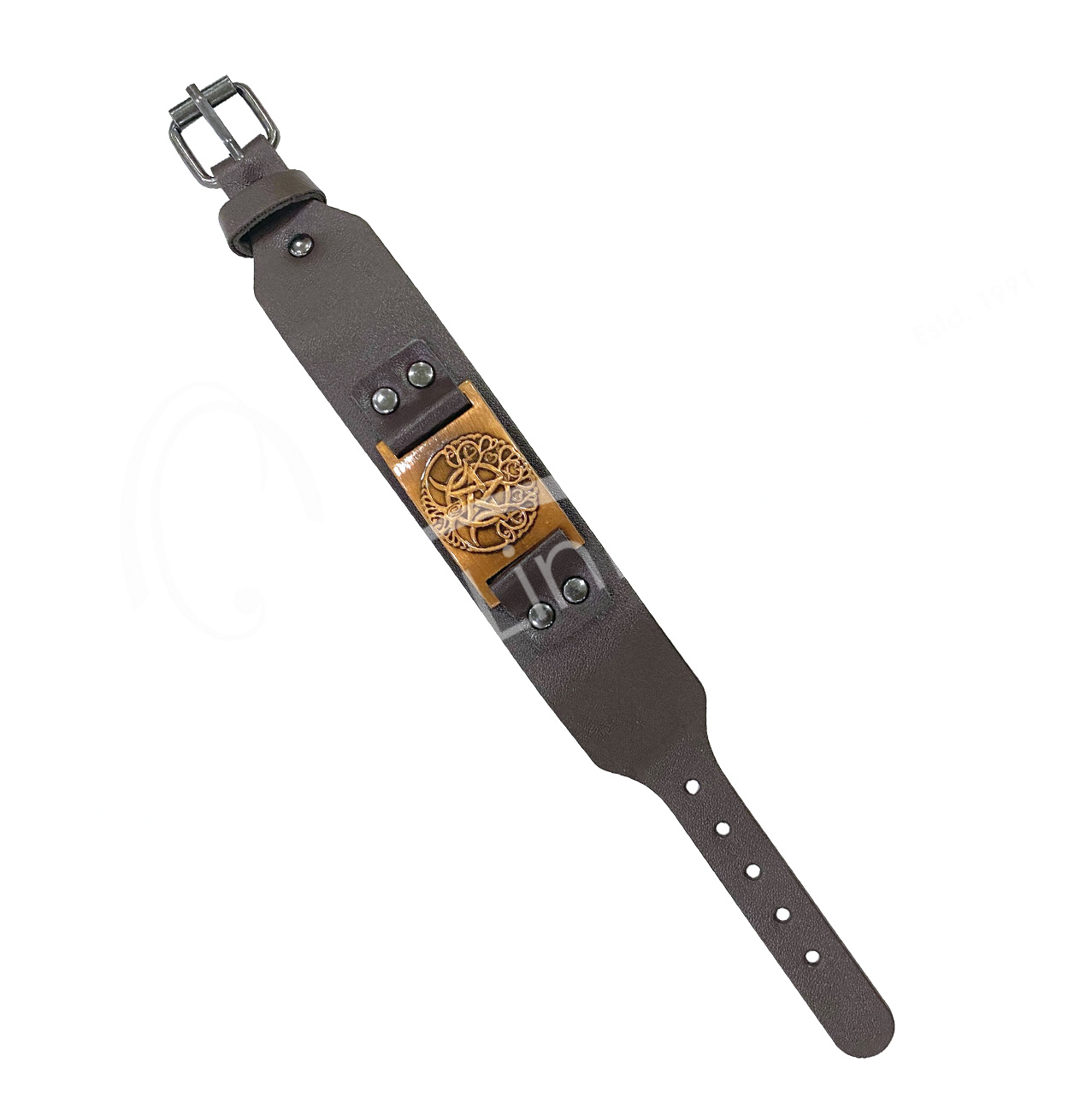 BRACELET – VEGAN LEATHER ADJUSTABLE BROWN TREE OF LIFE PENTACLE 1.25″W