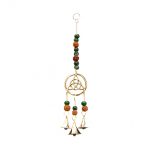 HANGING BELLS – TRIQUETRA WITH GREEN GLASS BEADS & RUDRAKSHA 10.5″