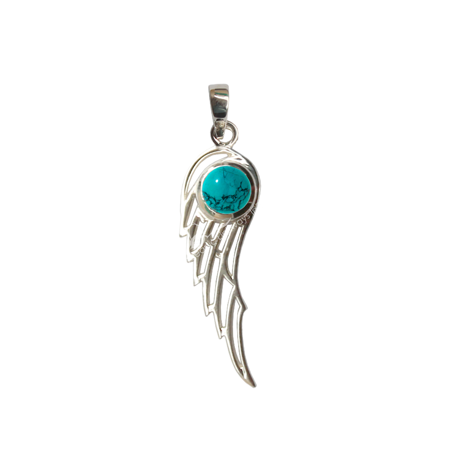 STERLING SILVER – PENDANT ANGEL WING TURQUOISE 1.75″L