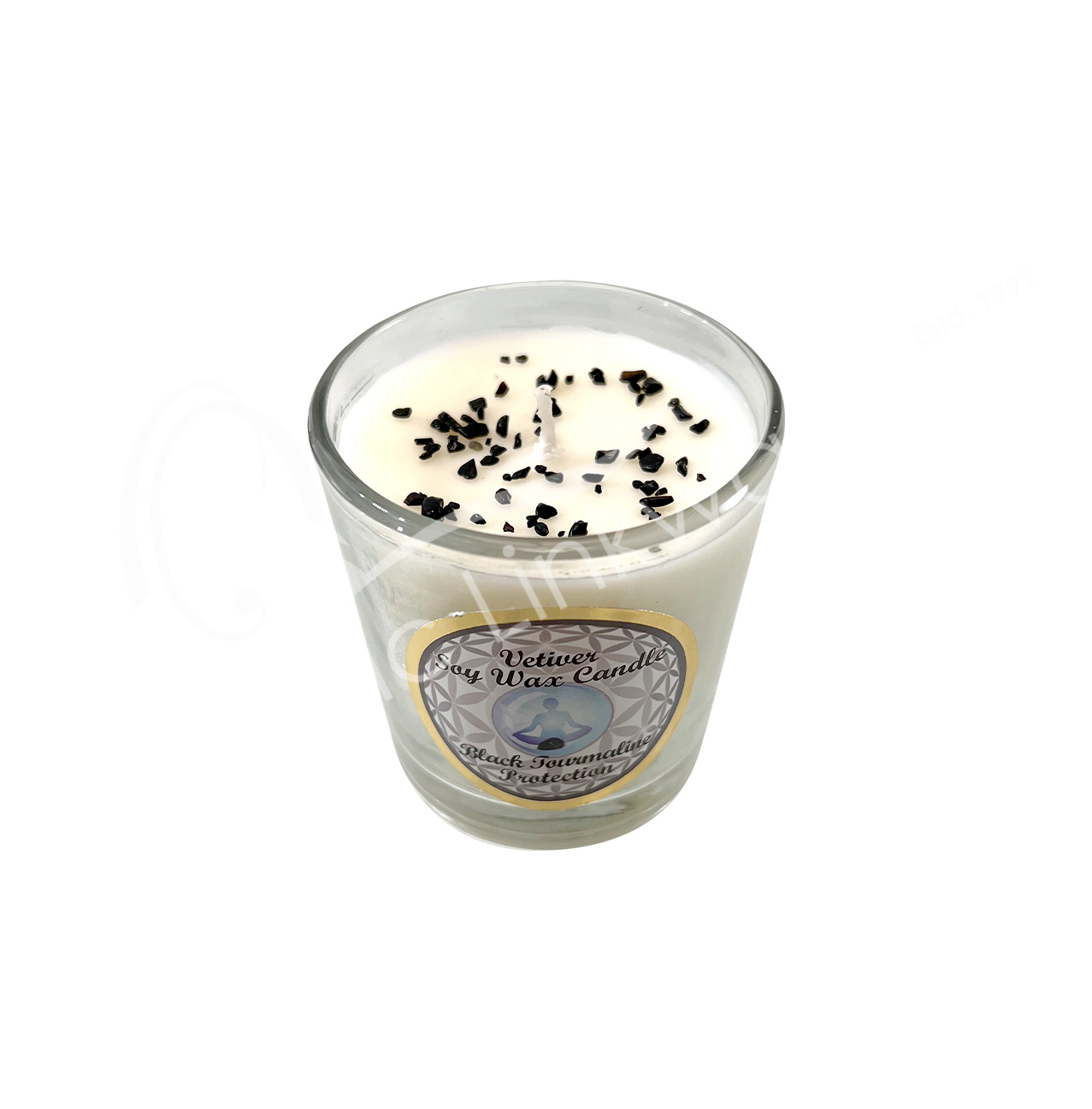 CANDLE VOTIVE – SOY WAX VETIVER WITH BLACK TOURMALINE/PROTECTION (PK 6) 2.25-2.5″H X 2.25″DIA.
