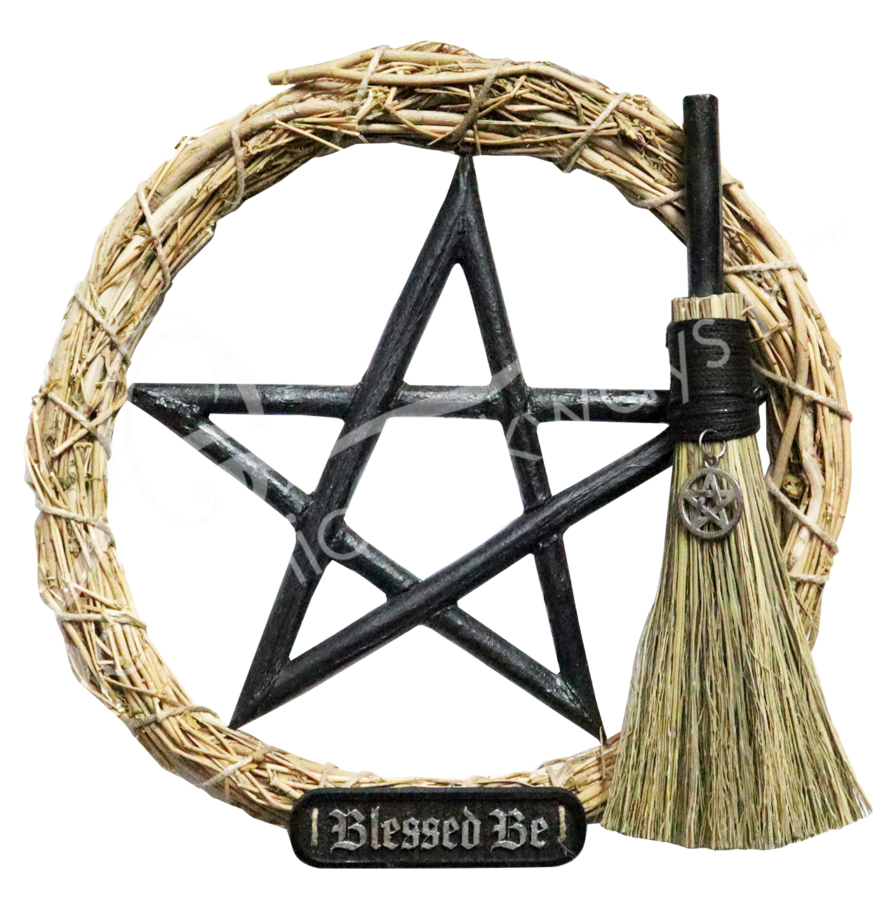 WALL PLAQUE – PENTACLE WREATH WITH MINI BROOM 8″L