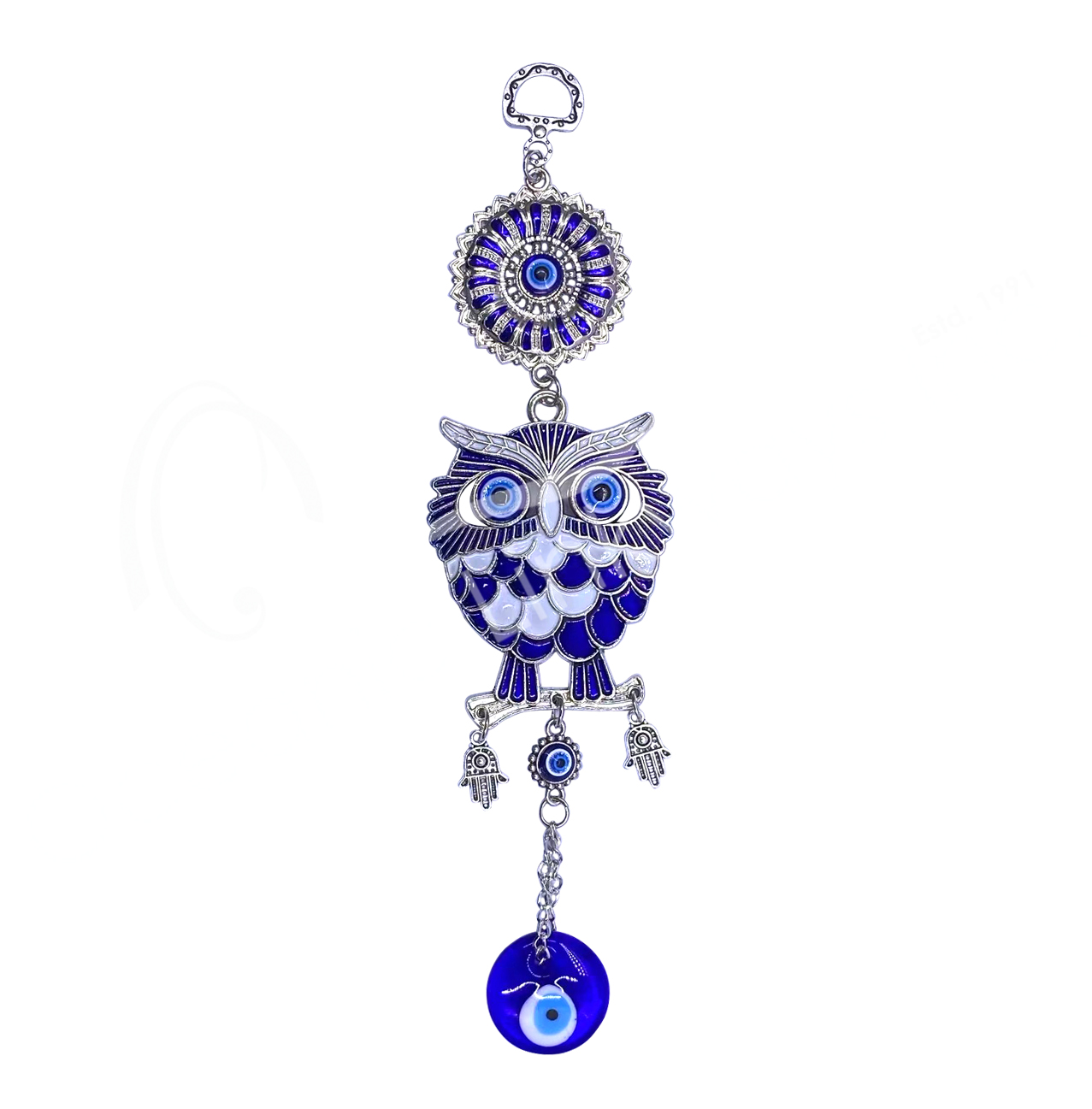 Deprecated: Function Yoast\WP\SEO\Helpers\Request_Helper::is_rest_request is deprecated since version Yoast SEO 23.6! Use wp_is_serving_rest_request instead. in /var/www/html/wp-includes/functions.php on line 6121 White & Blue Owl Evil Eye Hanging | Oceanic Linkways Inc. in NJ