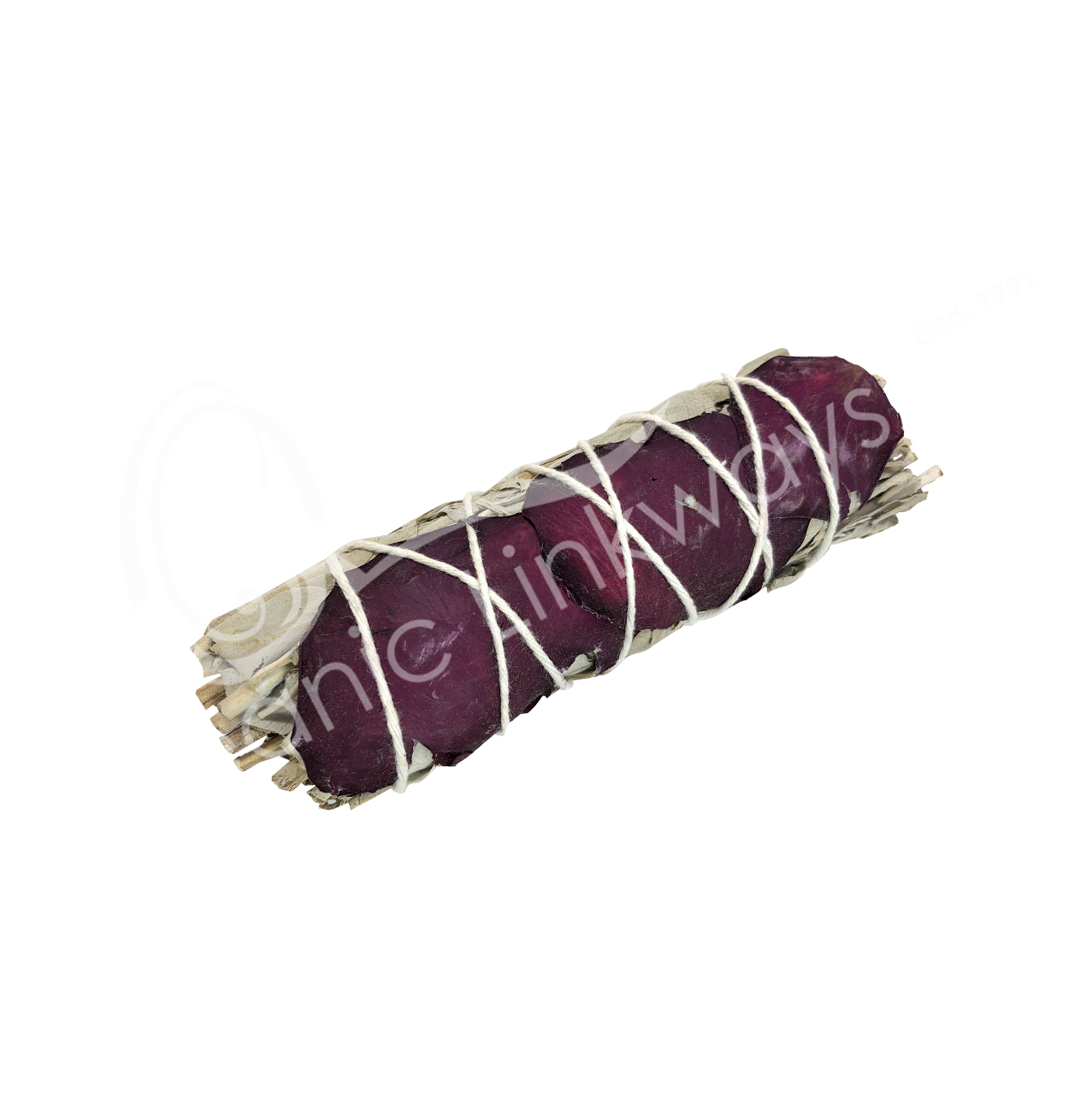 SMUDGE STICK – WHITE SAGE & ROSE PETALS 4-4.5″