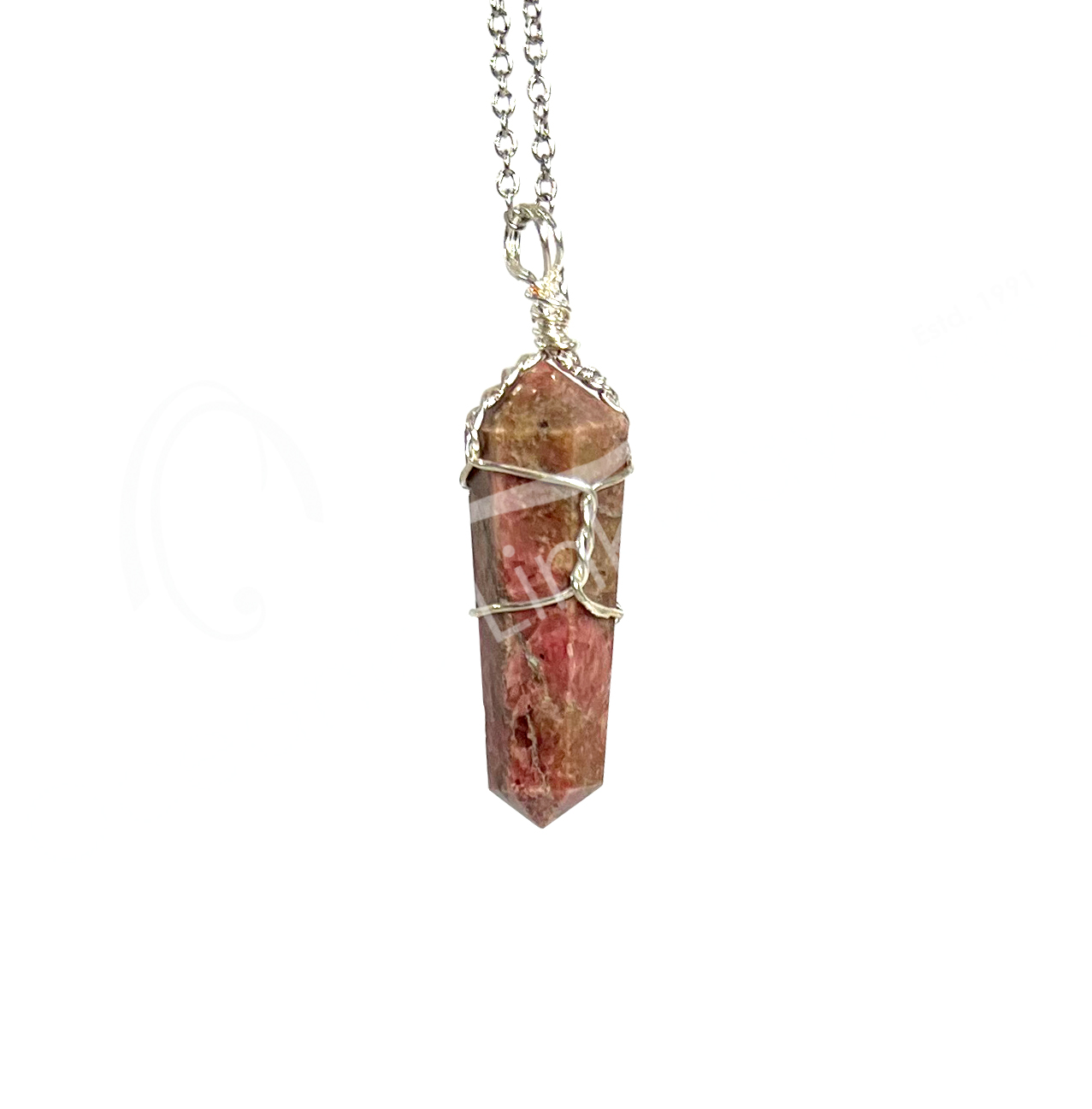 PENDANT – WIRE WRAP RHODONITE (PK 5) 1.25-1.75″