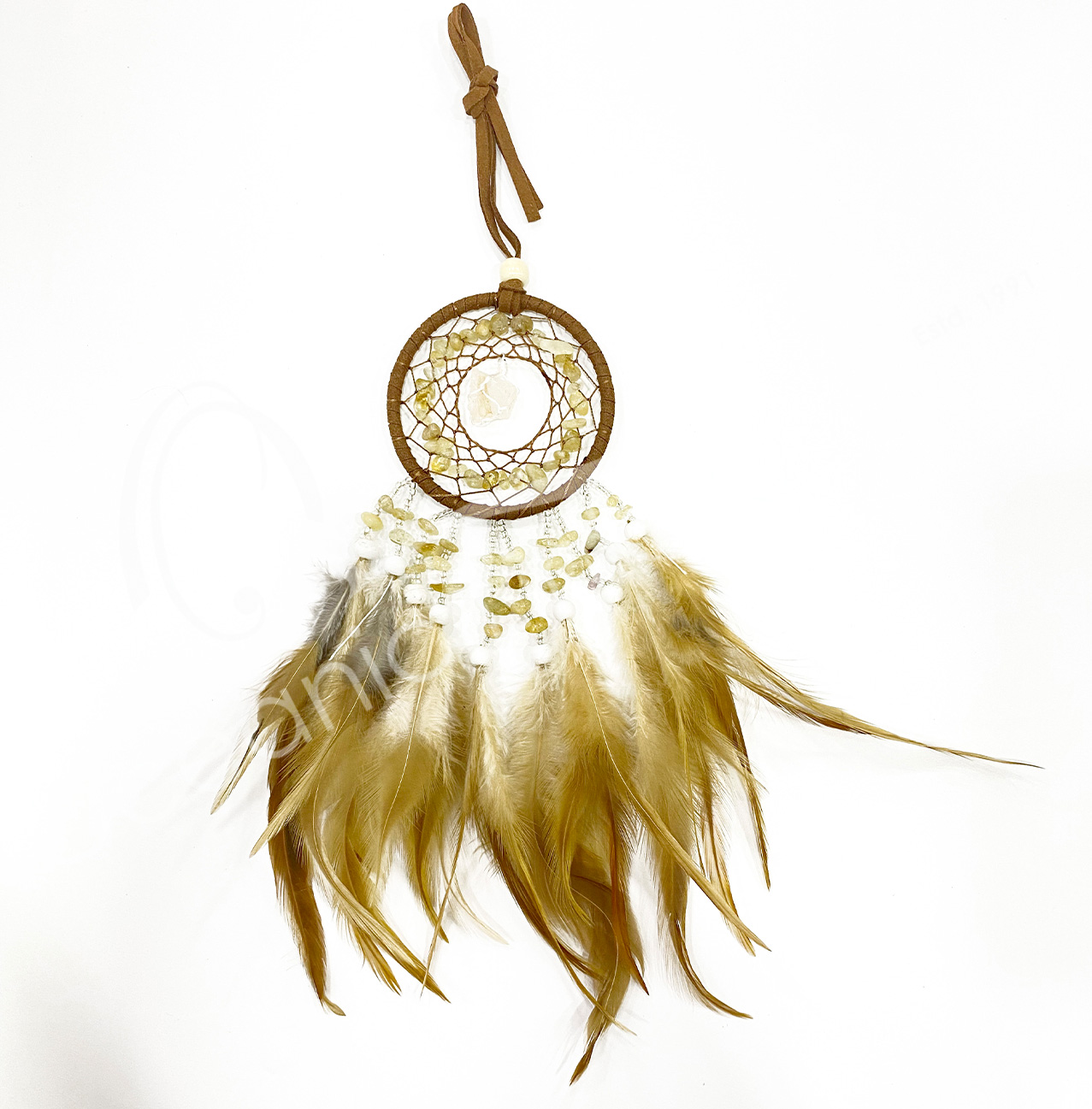 DREAMCATCHER – CHIPS & ROUGH CITRINE WITH NATURAL FEATHERS 3.25″DIA X 9.85″L