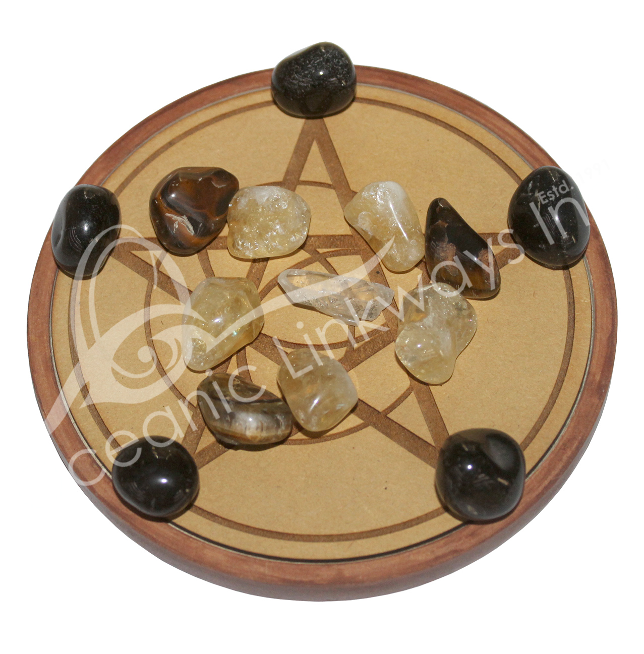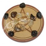 CRYSTAL GRID SET – WOOD PLAQUE & STONES FOR PROTECTION 6″DIA