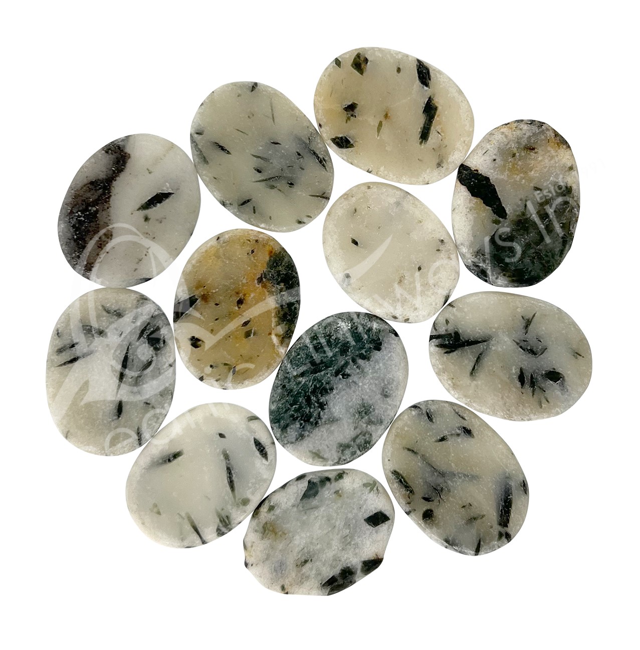 WORRY STONES – QUARTZ WITH GREEN TOURMALINE RUTILE (DZ) 1.5″
