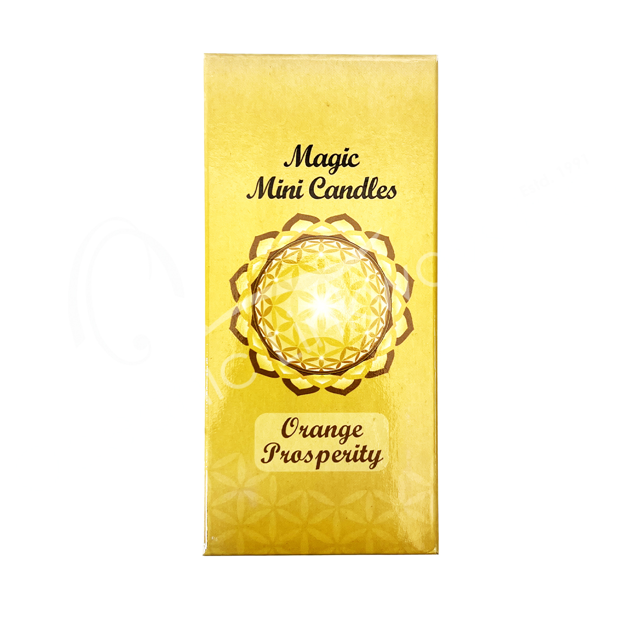 (CLOSE OUT) CANDLE – MINI SCENTED ORANGE YELLOW/PROSPERITY (PK 20) 4.75-5″H
